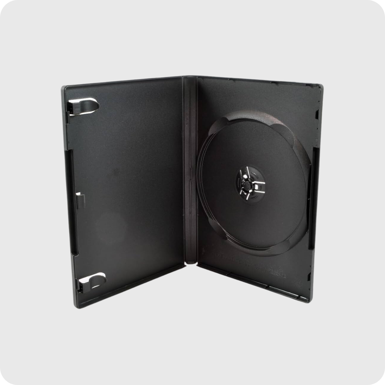 This is a 25 pack of empty black DVD cases. They have the clear protector around the outside that you can slip the DVD Jackets/Covers inside.